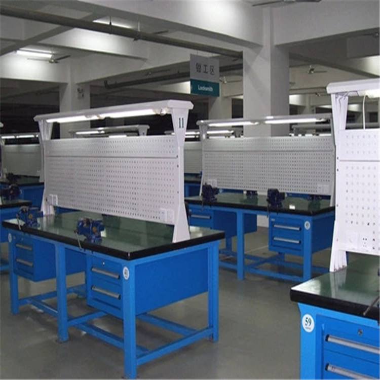 工作台适合于模具、钳工、检测、维修、组装等各种不同应用场合,具有良好的耐腐蚀性,耐脏性,抗冲击性和承重能力强。桌面经特殊处理,具有防腐、抗冲击力强等特点,多种桌面的选择,可配合不同的使用要求;所配置的抽屉、柜门方便使用者存储工具;桌角上预留电源孔,方便安装电源插座。工作台(桌)分为轻型(可承重300公斤),中型和重型工作台(桌)可承重1000公斤及特制的工作台。 可根据需要灵活地配置各种吊柜、单柜、双柜等,可加装挂板,电器板,灯顶板、调节脚杯,轮子,搁板等桌上部件,具有多种选择,能够满足各种工位的需求。