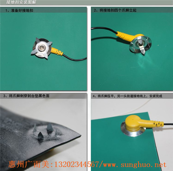 防静电工作台在日常使用中必须注意检验各项参数合格后方能使用。首先将工作台置于防静电地垫上。使用异丙基酒精清洗工作台垫上外表和各组件。将备好的防静电台垫平整地铺于工作台面上。检查操作人员的活动范围是否铺放防静电地垫。检查防静电台垫下外表有没有铺设箔箱和在折叠处搭接。要从防静电台垫正面压下旋钮接头(可以用不锈钢螺母钉、螺母、垫片组成的连接点代替),使其穿过台垫和箔带(有多层铝箔带处应保证均穿过)。用横截面不小于2mm多股胶合铜芯软线或电缆,把防静电台垫和地垫分别串联在1MΩ电阻连接到地线配置系统上,使防静电工作台接地。