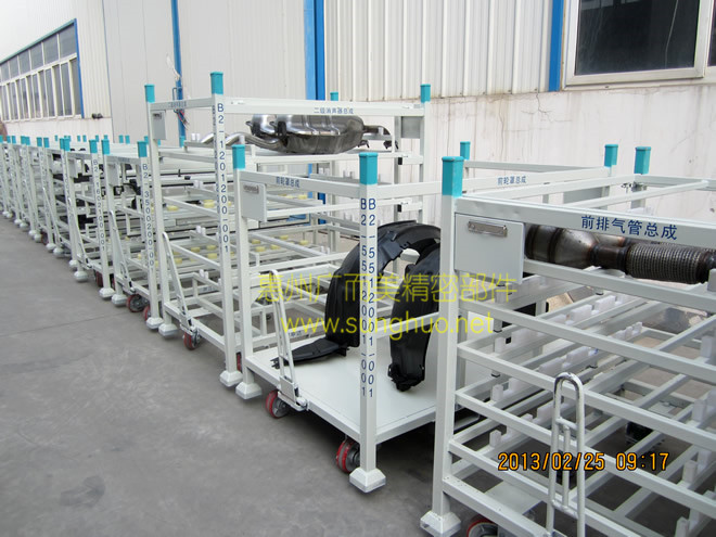 车间定做各种非标汽车零件周转架,非标料架工装车。接受不锈钢,铝型材,冷轧钢,精益管,镀锌管等各种材料的非标定做。提供设计,生产,运输,安装,售后保养维护等一条龙服务。 以下展示焊合件料架细节图为例子。