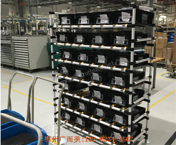 由精益管和多种精益管接头组装而成。积木式组装,制造时间快, 设计成本低。精益管货架成品具有外型美观、耐磨、色泽光亮等优点,精益管货架可任意组装、结构灵活多变、持续改善逐渐达到产品结构的合理状态。可配脚轮方便整个工位移动,是货物存储周转较好的选择!精益管货架已广泛应用于家电、汽车、轻工电子等行业工厂中。
